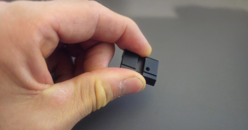 The design is straightforward: 11mm dovetail base to 21mm Picatinny rail, CNC-machined from aluminum, and topped with a matte black finish. It’s spring-loaded, so it automatically resizes inside the Picatinny rail it’s fitted into! It’s compact, lightweight, and doesn’t change the look of your rifle the way larger adapters can.